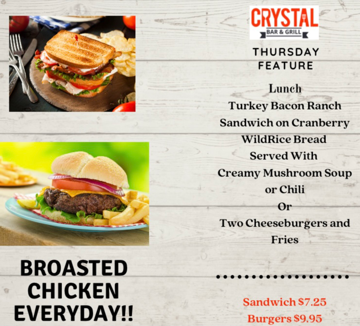 Welcome to Crystal Bar & Grill, a culinary gem nestled in the heart of Mora, MN. Located at 39 N Union St N, this inviting eatery is perfect for gatherings, family meals, or a quiet bite. The menu is a delightful mix of classic comfort food and creative dishes!